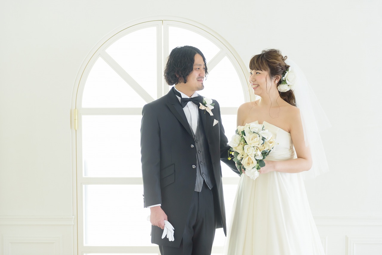 撮影はこちらのお部屋の中で行います。とてもシンプルで、どんなお衣裳でもマッチするというのがポイント。自然光もたっぷり入るため、スタジオ撮影でもかっちりしすぎない柔らかい雰囲気のお写真が撮影できます。