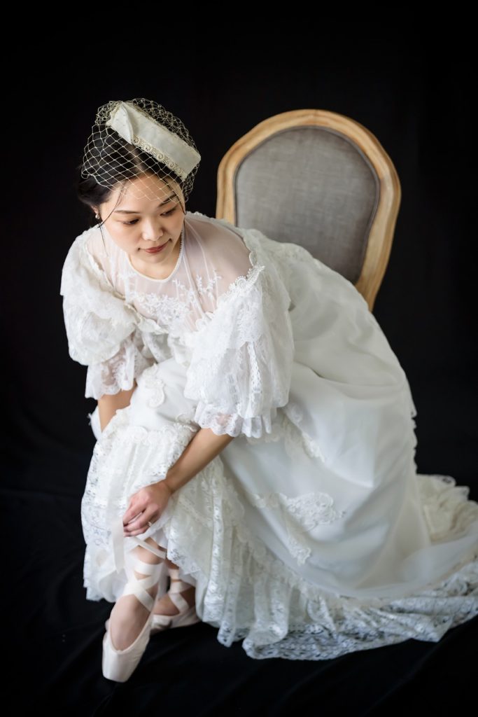結婚式で使用する予定だった、手作りの刺繍アイテムを持ち込みました。また、祖母が作ってくれたリングピローと一緒に撮影して頂きました。昔からクラシックバレエをしており、トゥシューズを持ち込みました。憧れの、ドレス×トゥシューズの写真を残すことが出来ました。