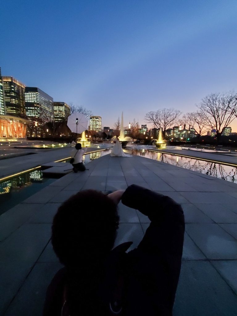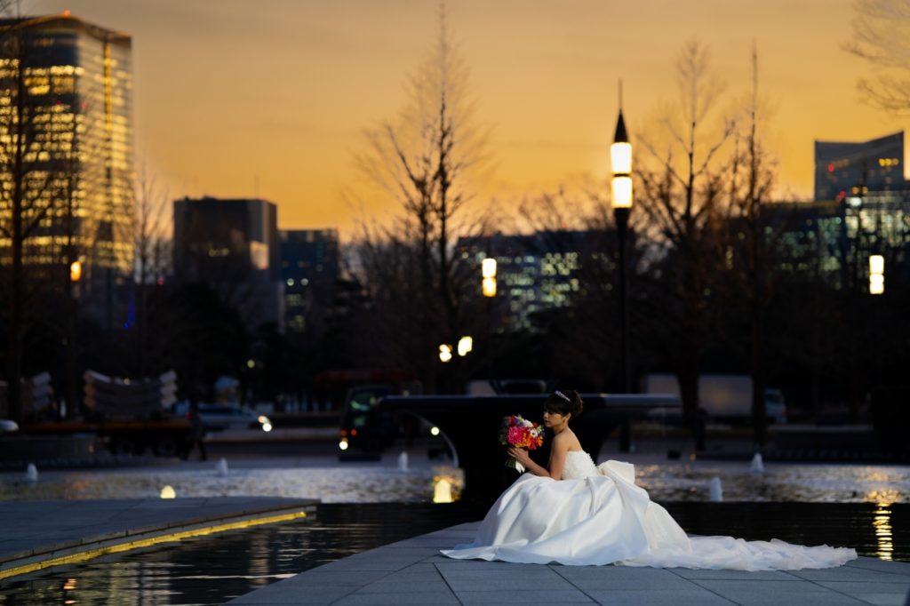 天気も良く雲一つない夕日をバックに撮影できたり、東京駅舎のど真ん中で撮影することができたことを嬉しく思います。