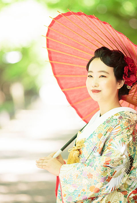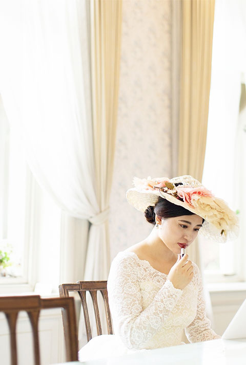 ドレス、和装、それぞれにあった小物とブーケをecooがご用意いたします。お二人の選んだお衣裳とプランに合わせてecooがぴったりのものをお選びして当日お持ちいたします。小物によってお二人の表情もぐっと変わります。いろいろなイメージでたくさん撮影いたします。もちろんお気に入りの小物やブーケのお持ち込みも可能です。