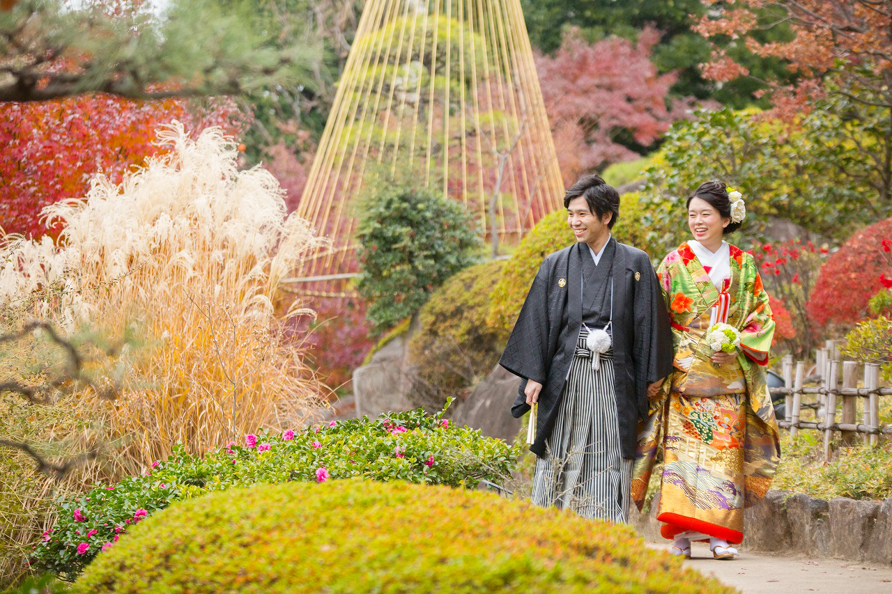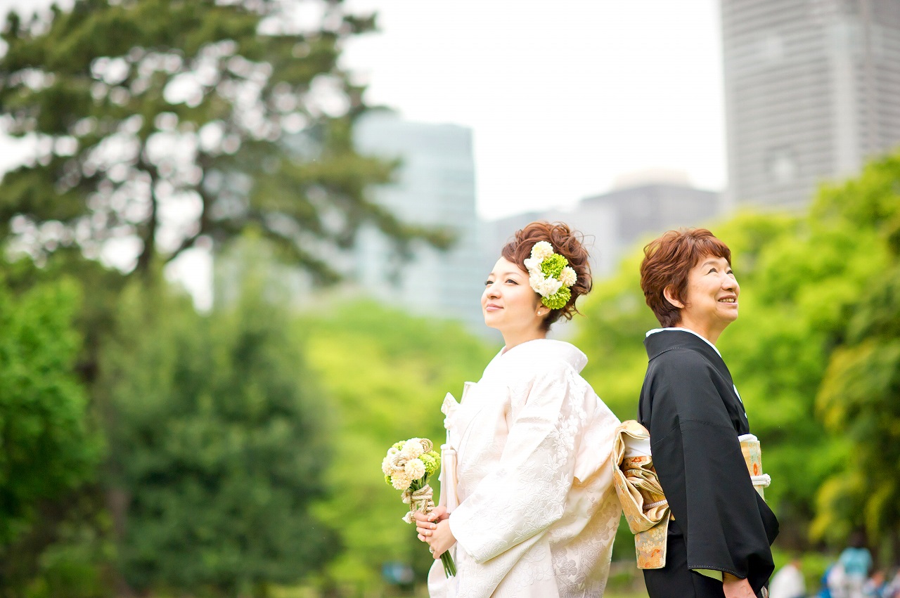 鏡越しの笑顔や、キレイに変身していくご新婦様を見つめるご新郎様など、メイクシーンはかわいく撮れるポイントいっぱいです。メインの撮影は代々木公園や、緑いっぱいの日本庭園。四季折々の表情を見せる開放的な場所で思いっきり撮影しましょう。